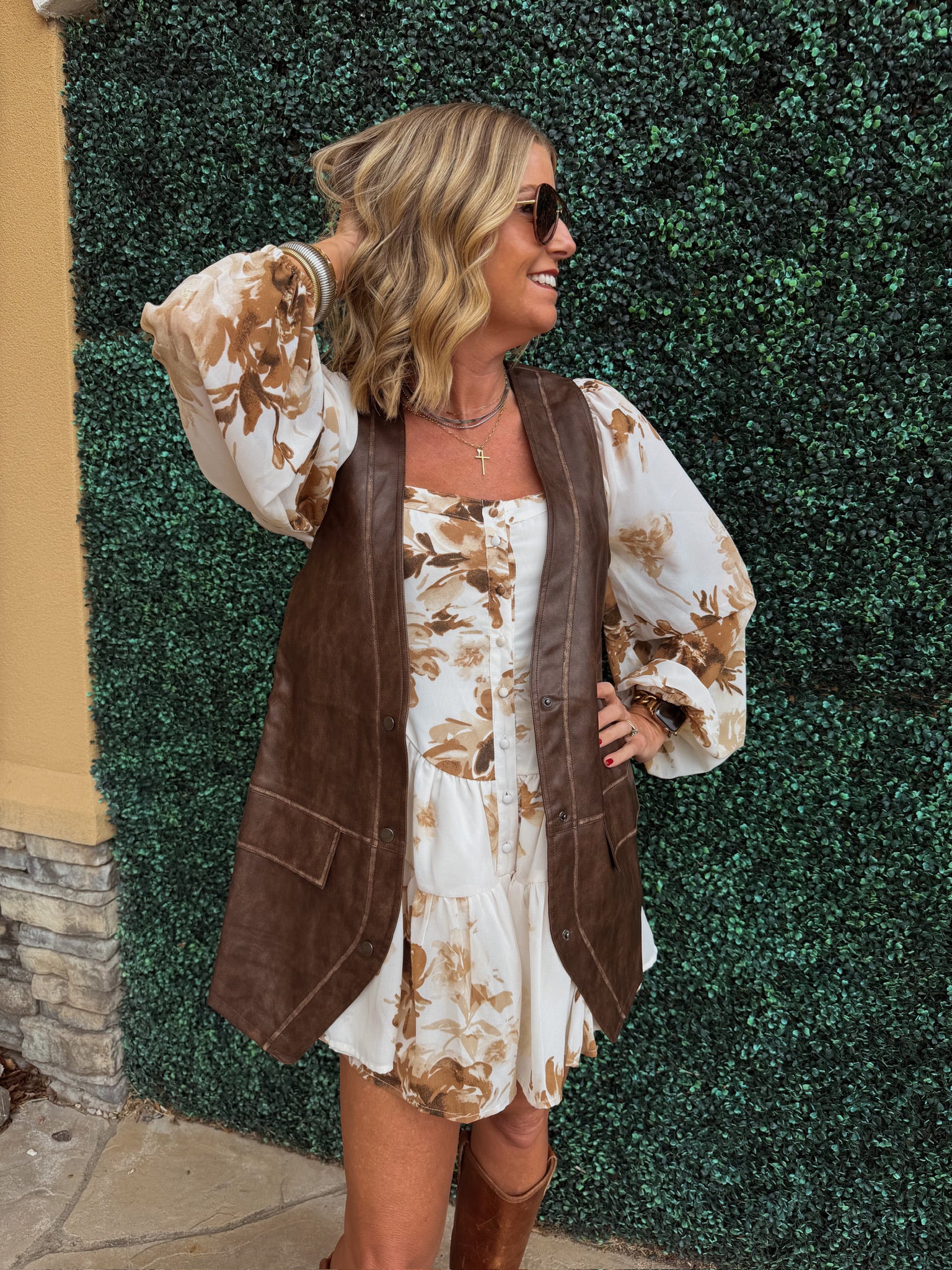 Gorgeous brown faux leather snap up vest.