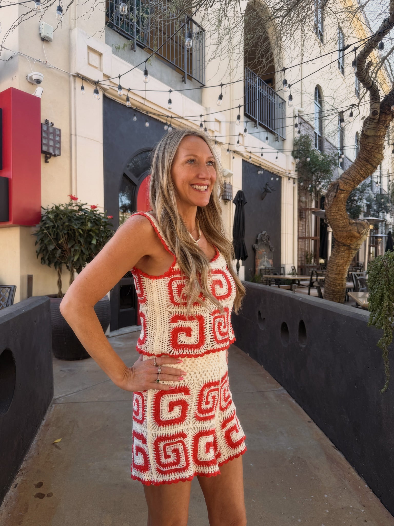 The best granny square crochet cropped tank in red and cream! One size fits most! Look for the matching shorts!